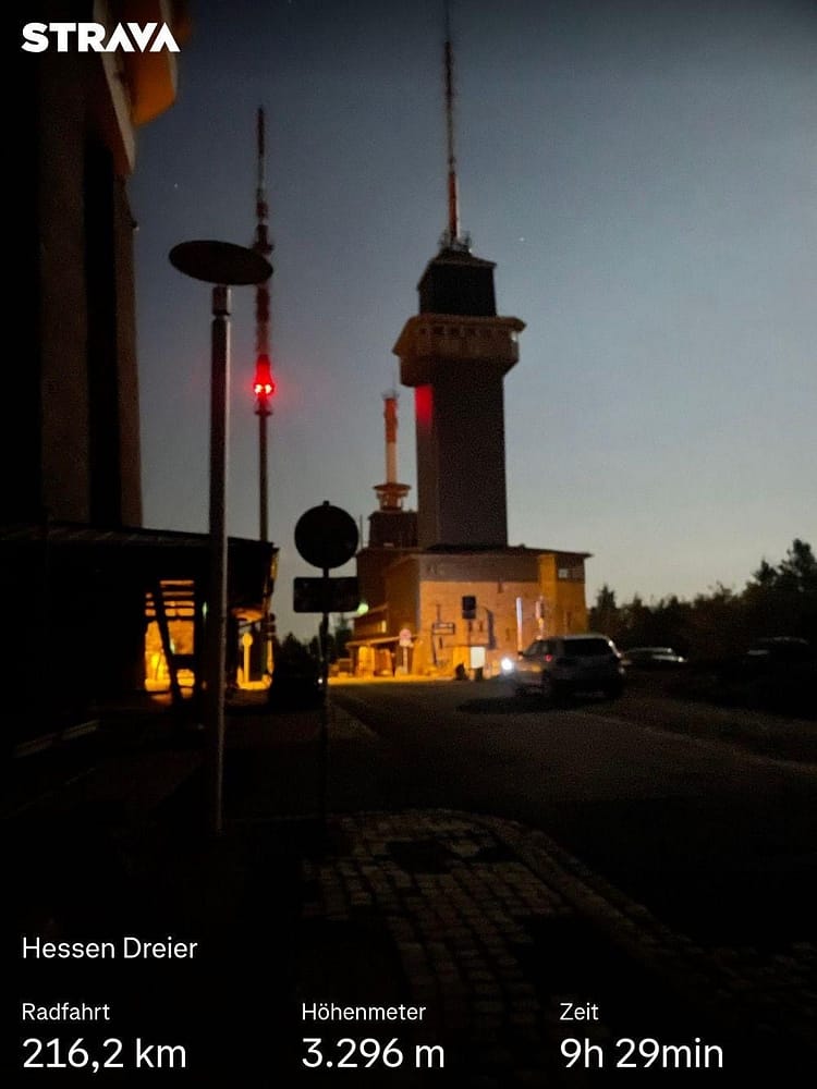Ein paar Höhenmeter waren es laut STRAVA tatsächlich. Wie soll ich es beschreiben? Ich hatte schon nach der Wasserkuppe und 40 km keinen Bock mehr. Das folgende auf und ab in Richtung Hoherodskopf war zermürbend, bei km 75 sass ich auf der Bank einer Bushaltestelle und dachte: wenn jetzt der Bus kommt, steige ich ein. Kam aber keiner, ländliche Gegend halt, da hat der Verkehrsminister ja mal was für meine Motivation getan. Weiter mit der Aussicht auf Pommes und Wurst – Grüße an die Tour de Frittur von Richie und Tobi – auf dem Hoherodskopf, was den Weg runter in die Wetterau irgendwie erleichtern sollte. Gab´s dann auch, mit vollem Magen fiel ich wie ein Stein zu Tal in die Wetterau. Nur noch 90 km und 1200 Hm vor mir…….was? …… 90 km? Hoch? ……… niemals………. und es wird irgendwann auch dunkel! Muss das? Ja, muss! Ein Tritt nach dem anderen, geht doch. In Schmitten noch ein paar – damals wohl noch unfermentierte Riegel – und hoch gings auf den Berg.